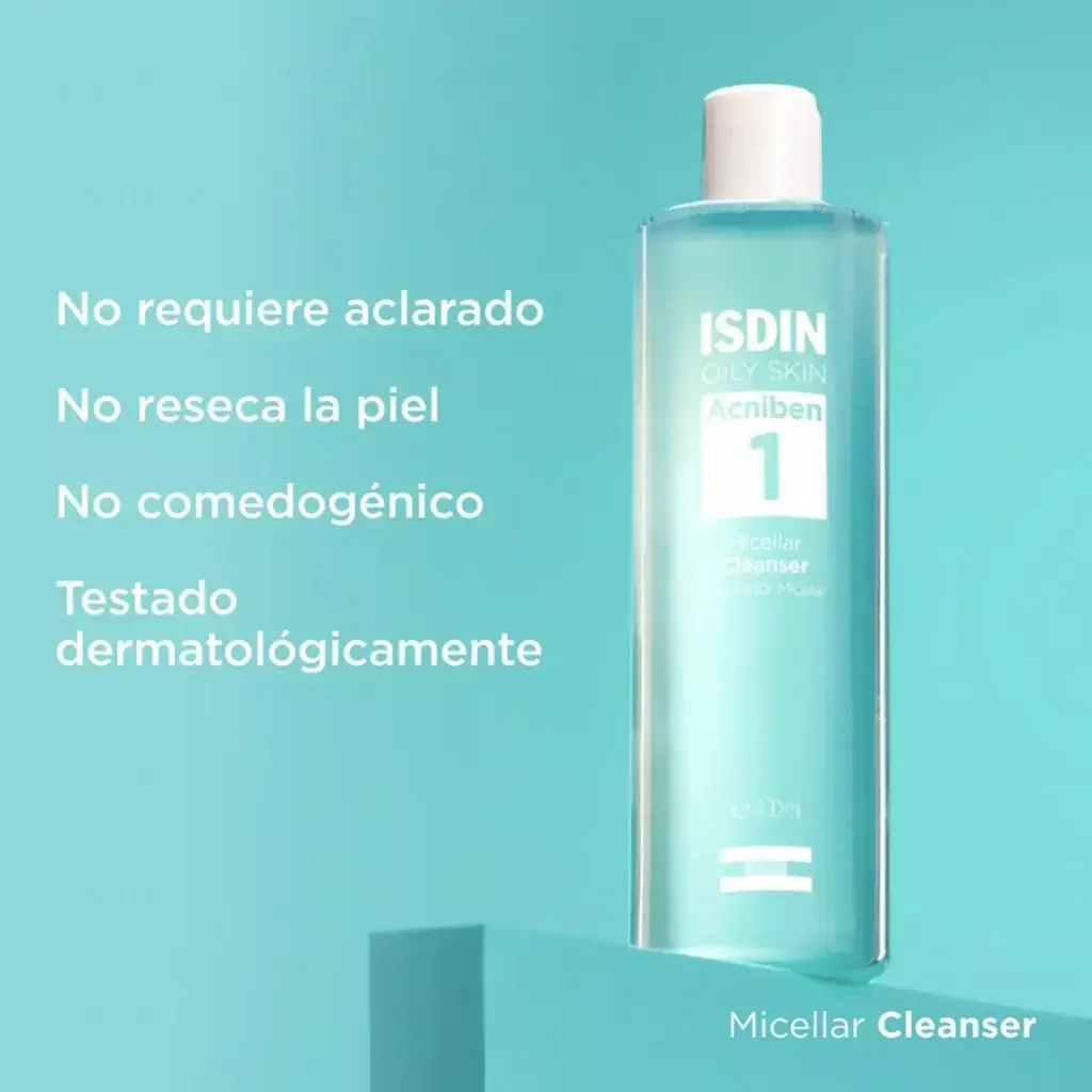 Indicado para la piel grasa o con tendencia al acné. Acniben Micellar Cleanser limpia el rostro, elimina el maquillaje y aporta un efecto matificante sin resecar la piel. . Su fórmula con micelas encapsula la grasa y el maquillaje, limpiando el rostro de forma suave y sin resecar para una piel matificada y con menos brillos.