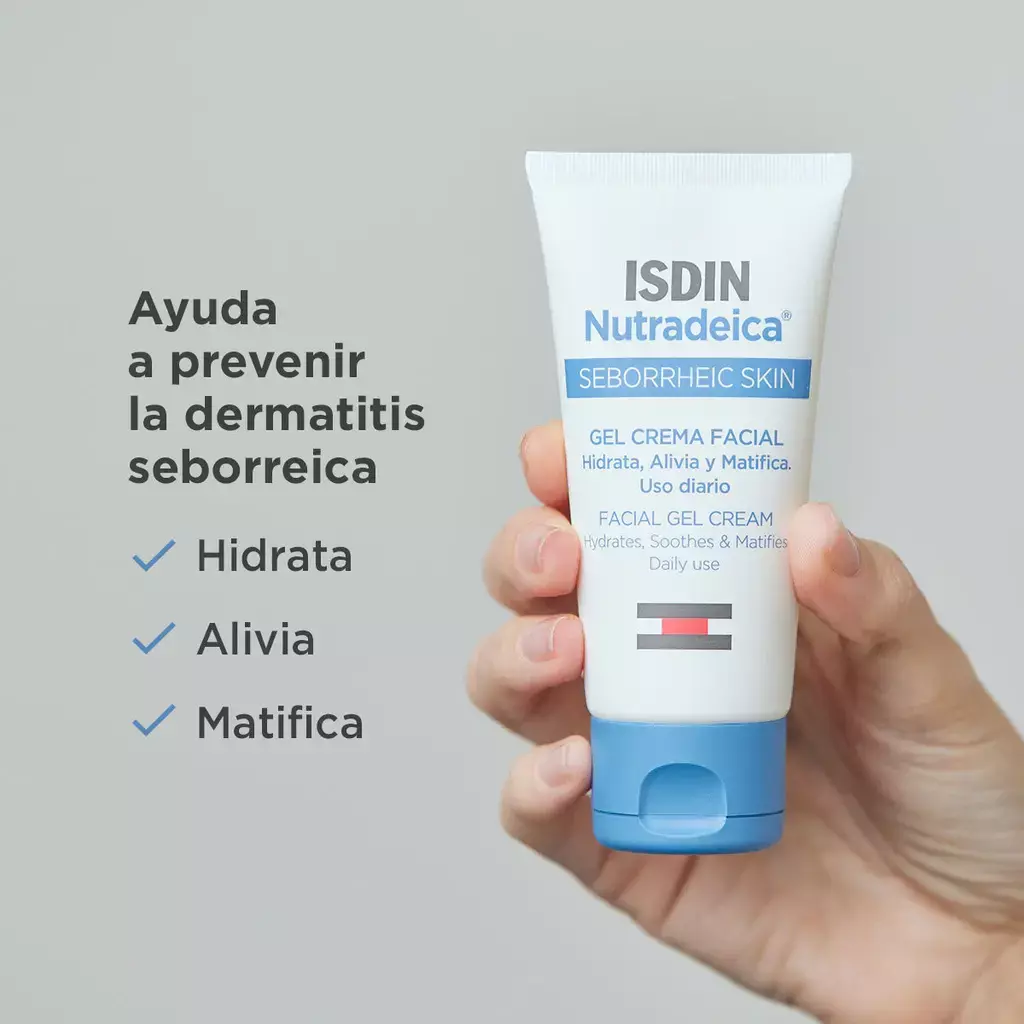 Gel-crema facial específico que ayuda a calmar la sensación de disconfort de las pieles muy grasas, especialmente efectiva en aquellas zonas con mayor tendencia a la aparición de signos: frente, cejas y área perinasal.